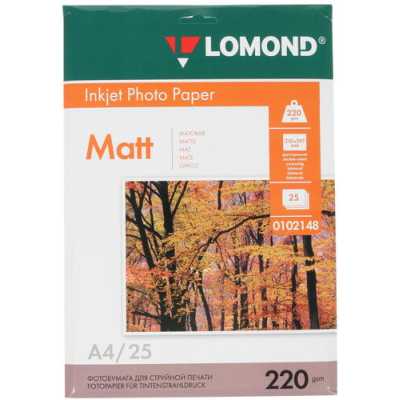 Фотобумага Двухсторонняя Матовая, 220 г/м2, A4, 25 листов., 0102148