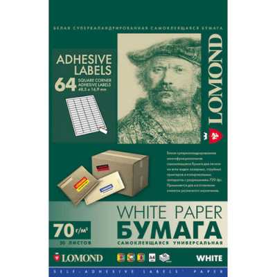 Самоклеящаяся бумага универсальная для этикеток, A4, 64 делен. (48.5 x 16.9 мм), 70 г/м2, 50 листов., 2100205