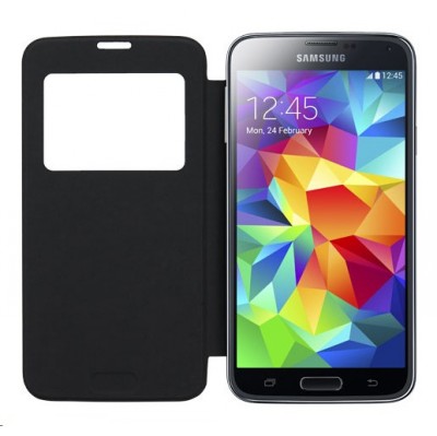 для Galaxy S 5 черный view flipcover lambskin pattern