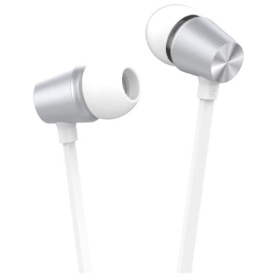 Проводные наушники с микрофоном, вставные (затычки), чувствительность 103 дБ, двухстороннее, импеданс 16 Ом, 20 Гц - 20 кГц, разъем mini jack 3.5 mm, серебристые