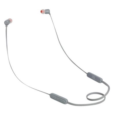 Bluetooth-наушники с микрофоном, вставные (затычки), время работы 6 ч, чувствительность 96 дБ, импеданс 16 Ом, вес 16.2 г, цвет: серый (JBLT110BTGRY)