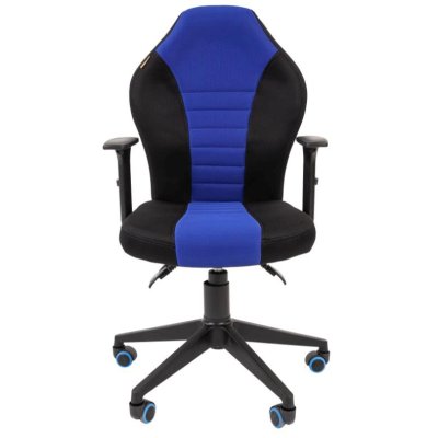 Игровое кресло, подлокотники пластиковые, крестовина пластик, материал обивки текстиль, регулировка по высоте, газлифт, механизм качания, максимальная нагрузка 100 кг, цвет черный, синий, 7027141