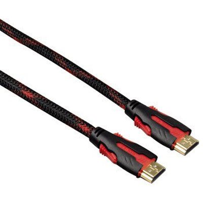 Кабель, HDMI - HDMI, версия 1.4, позолоченные контакты, 3D + Ethernet, экранирование, текстильная оплетка, 2 метра, черный/красный, H-51877