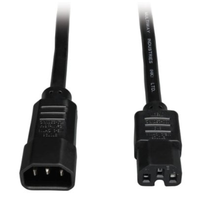 Power Extension Cord - C15 to C14, 100-250V, 15A, 14Awg, SJT - 6 ft P018-006