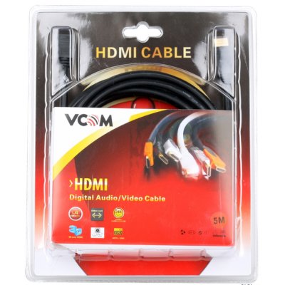 Кабель, HDMI - HDMI, версия 1.4, 3D + HDMI Ethernet, позолоченные контакты, угловой коннектор, материал проводника медь, 5 метров, черный, VHD6260D-5MB