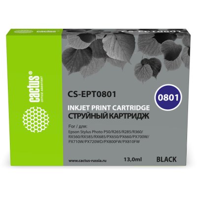Объем: 13 мл, цвет: черный, тип: струйный, совместим с: Epson Stylus PhotoP50, PX650, PX660, PX700, PX700W, CS-EPT0801