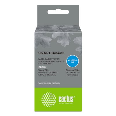 Ресурс: 2.1 м, цвет: черный шрифт, белый фон, тип: ленточный, размер ленты: 11.15 мм, совместим с: Brady BMP21-PLUS, BMP21, BMP21-LAB, CS-M21-250C342