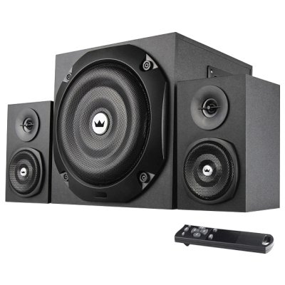 компьютерная акустика 2.1, суммарная мощность 40 Вт, однополосные колонки, материал корпуса колонок: MDF, материал корпуса сабвуфера: MDF, диапазон частот 40 - 18000 Гц, пульт ДУ, поддержка карт памяти SD