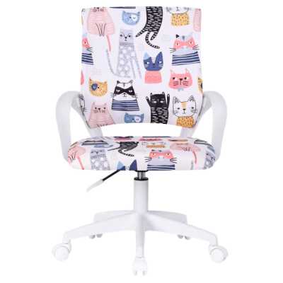 Пластиковые подлокотники, крестовина пластик, материал текстиль, регулировка по высоте, максимальная нагрузка 90 кг, цвет белый + принт "Коты", вес 6.1 кг, 64815