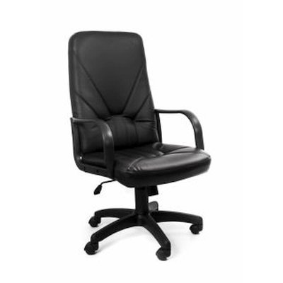 Офисное кресло, подлокотники (пластик), крестовина (пластик), материал (экокожа), механизм качания, регулировка по высоте, газлифт, максимальная нагрузка 120 кг, цвет черный, Leader