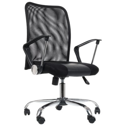 Офисное кресло, подлокотники (пластик), крестовина (металл), материал (сетка, кожа), механизм качания, регулировка по высоте, газлифт, максимальная нагрузка 120 кг, цвет черный, Smart 60
