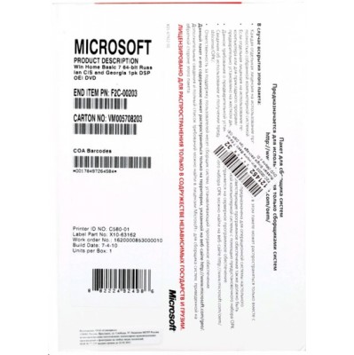 операционная система Microsoft Windows 7 Home Basic F2C-00203-D