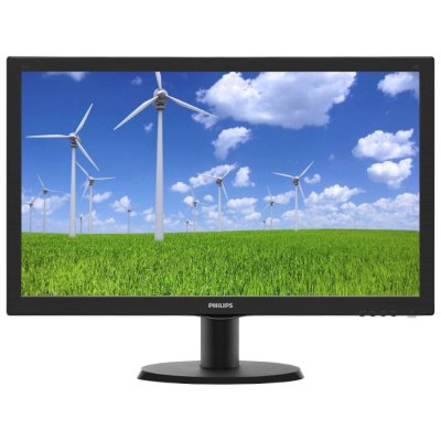 Бюджетный универсальный ЖК монитор с диагональю 23 дюйма, матрицей TFT TN, светодиодной (LED) подсветкой, разрешением 1920х1080, соотношением сторон экрана 16:9, максимальной частотой 60 Гц. У монитора качественный экран с яркостью 250 кд/м2, временем отклика 5 мс, динамической контрастностью 10000000:1, отбражающий изображение с глубиной 16.7 млн. цветов с областью обзора по горизонтали: 170°; по вертикали: 160°. Для подключения предусмотрены порты: DVI-D, VGA (D-SUB). Габариты - 560x424x219 мм.