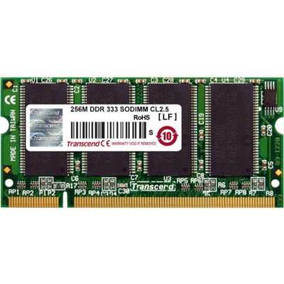 DDR, объём: 1 модуль на 256Mb, тактовая частота: 333 MHz, форм-фактор: SODIMM 200-контактный, скорость: PC-2700, поддержка ECC: нет, Low Profile: нет, Registered: нет, TS32MSD64V3F5