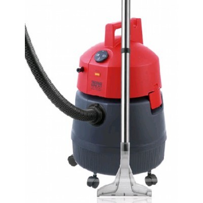 Потребляемая мощность 1400 Вт, сухая и влажная уборка, мешок для сбора пыли 30 л, объем всасываемой воды 23 л, цвет красный