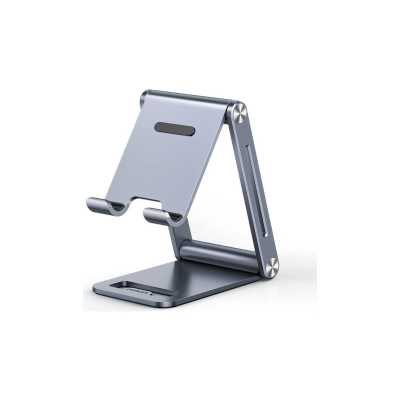 Подставка настольная складная для телефона, планшета, Foldable Multi-Angle Phone Stand, материал: алюминий, силикон, цвет: серый, 80708