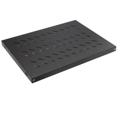 19" 1U стационарная полка для напольных и настенных шкафов LANDE глубиной 600 мм, нагрузка 50 кг, 4 точки крепления, цвет черный, LN-RAF-SBT-D600-BL