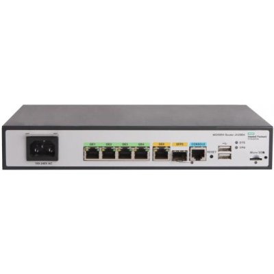 4 порта Ethernet 1 Гбит/с, USB-порт, IEEE 802.1q (VLAN), IEEE 802.3ad (Link Aggregation Control Protocol), IEEE 802.1p (Priority tags), IEEE 802.1d (Spanning Tree), IEEE 802.1s (Multiple Spanning Tree), поддержка VPN Endpoint, Firewall, DHCP-сервер, JH296A