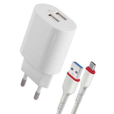 Сетевое ЗУ UPC-24 2x USB, 5V/2.1А, кабель Type-C, 83679