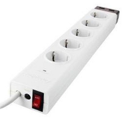 порты: 2хUSB 2A, 5 розетки 220V, цвет: белый