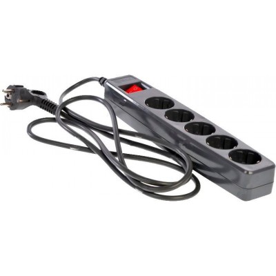 Сетевой фильтр ЭРА (черный) с заземл, 3x1мм2, со шт, с выкл, 5гн, 2м, кор