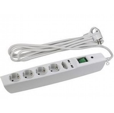 Сетевой фильтр ЭРА (белый) с заземл, 3x1мм2, со шт, с выкл, 5гн+2xUSB, 2м, кор