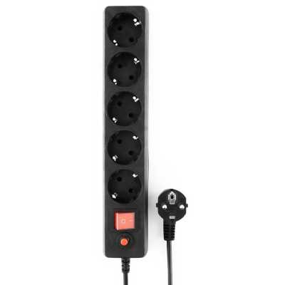 Количество розеток 5, длина шнура 1.4 метра, 5x Schuko (розетка), предохранитель, заземление, допустимый ток 10А, цвет черный, ECL-5-B-1.4