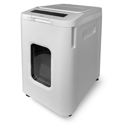 DIN P-5 (4 ур-нь секр.), кол-во уничтожаемых листов 13, размер фрагментов 1.9x12 мм, объем 55 литров, уничтожает: бумагу, CD-диски, канцелярские скобы, пластиковые карты, скрепки, белый, 23.5 кг, АП55-5