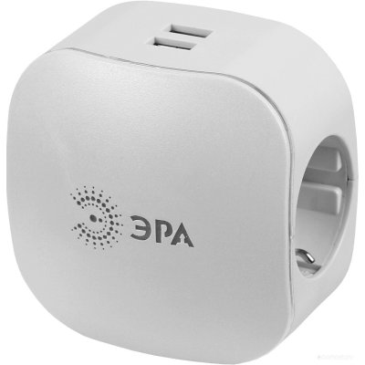 ЭРА Тройник 3гн 220V + 2xUSB 1000mA, c заземл, со шт (белый)